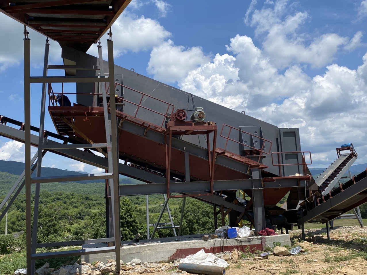 Máy đá Minh Huy triển khai sản xuất máy sàng rung kích thước 2400-8000 mét 3 tầng lưới cho đá granite vật liệu có độ mài mòn cực cao lên tới 1300-1500 kg/cm2